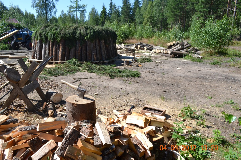 Hiilimiilu Sophien rakentamiseen kului 20 m3 tervalepästä ja haavasta tehtyä polttopuuta. Tulokseksi saimme 7 m3 hiiltä, hyvä tulos siis!